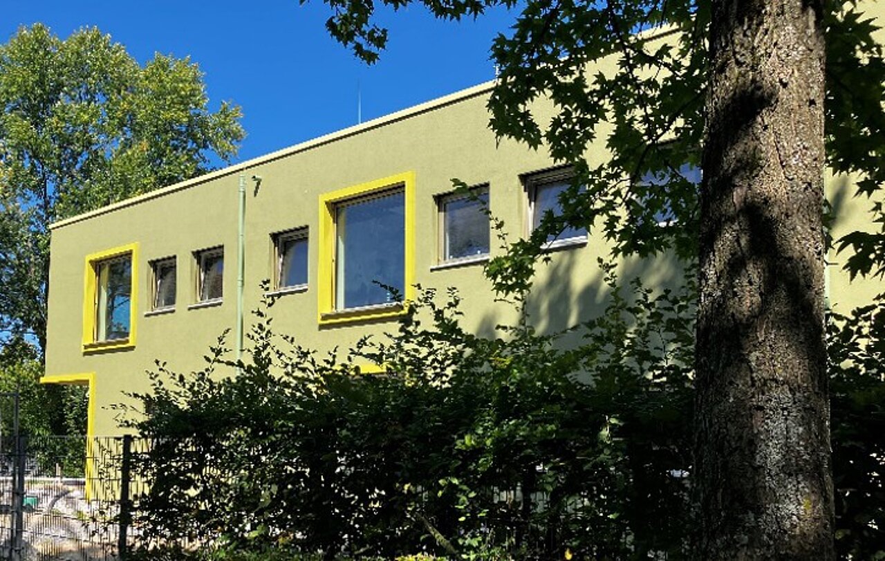 Im zweigeschossigen Neubau wurden neben den vier Gruppenräumen mit den entsprechenden Nebenräumen ein Mehrzweckraum, eine großzügige Küche sowie Verwaltungs- und Aufenthaltsräume für das städtische Kitapersonal errichtet. Nicht nur bei der Ausstattung wurde viel Wert auf die Wahl von kindgerechten und nachhaltigen Materialien gelegt, auch das Gebäude erfüllt mit dem Effizienzhaus-40-Standard höchste Anforderungen an die Energieeffizienz.