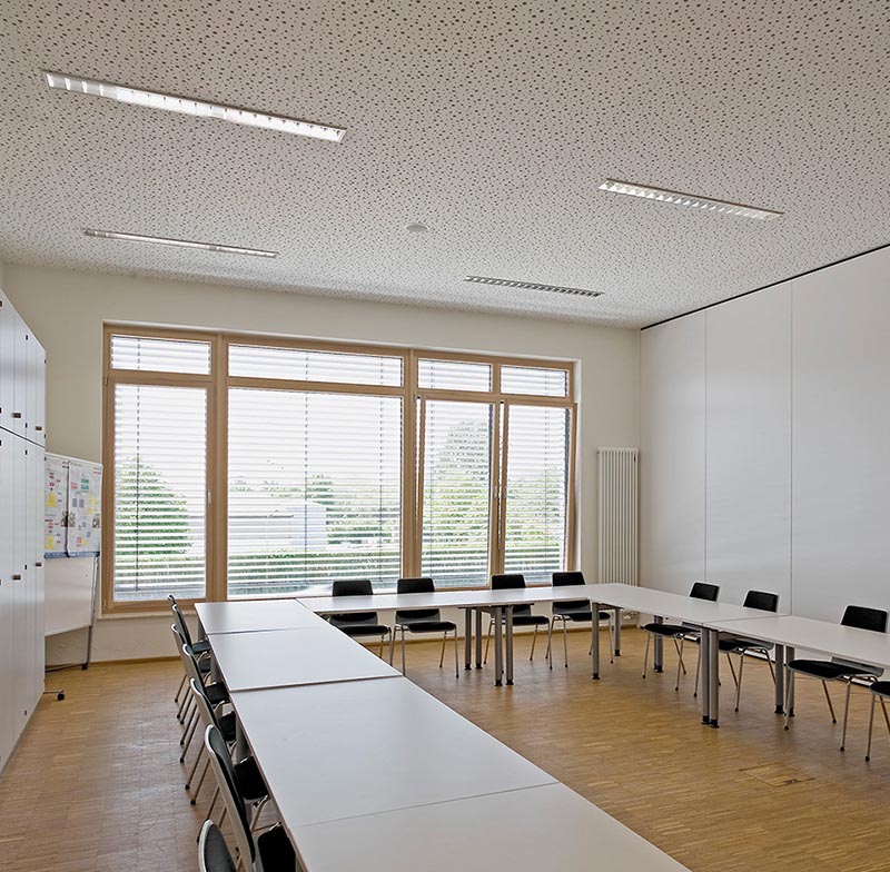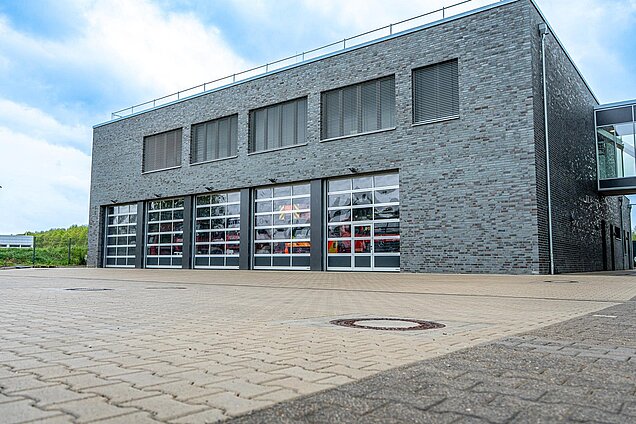 Eine Photovoltaikanlage mit einer Leistung von 16 kWp unterstützt den Eigenenergiebedarf. Für maximale Sicherheit sorgt eine flächendeckende Brandmeldeanlage zur Überwachung und Alarmierung. Im Einsatzfall erfolgt die Alarmschaltung der Beleuchtung über KNX in den definierten Einsatzwegen wie Alarmflur, Umkleiden und Fahrzeughalle.